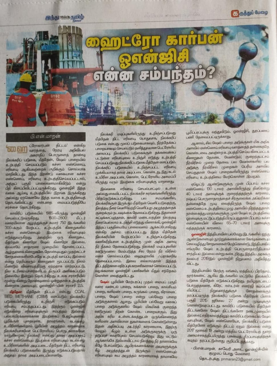 மீத்தேன் – ஷேல் – ஹைட்ரோகார்பன் – ஓஎன்ஜிசி என்ன சம்பந்தம்? இந்து தமிழ்திசை கட்டுரை